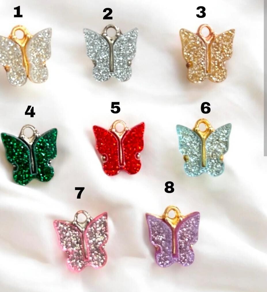 ✅Random Colours of Glittery Butterfly Charms Contains pack of 10 Different colours